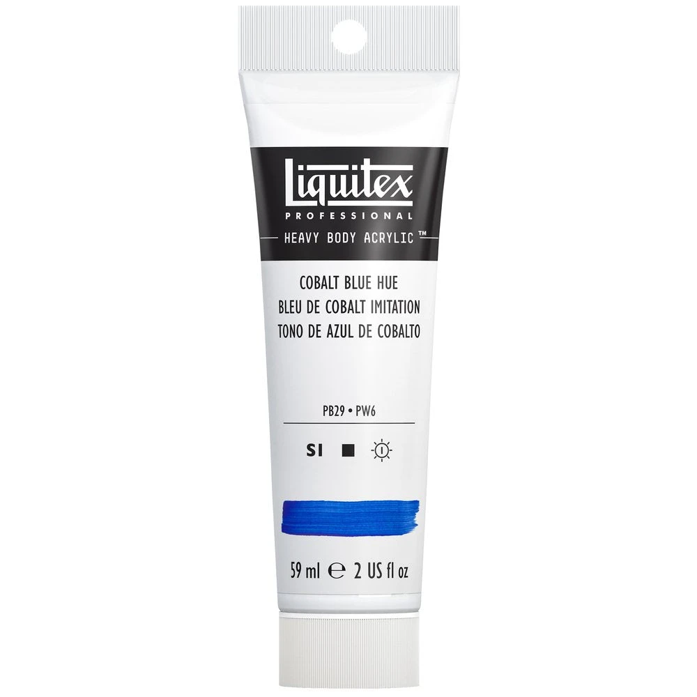 A bright blue with green undertones. It is a careful combination of pigments closely resembling genuine cobalt blue