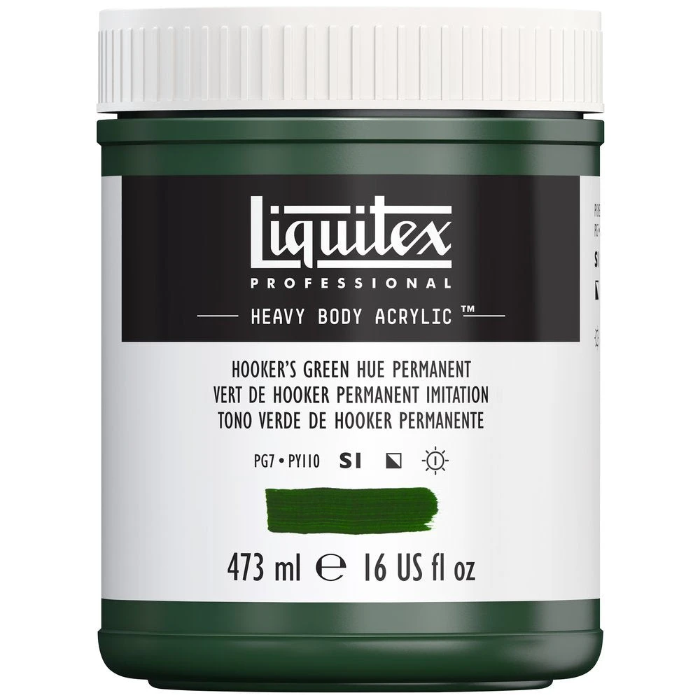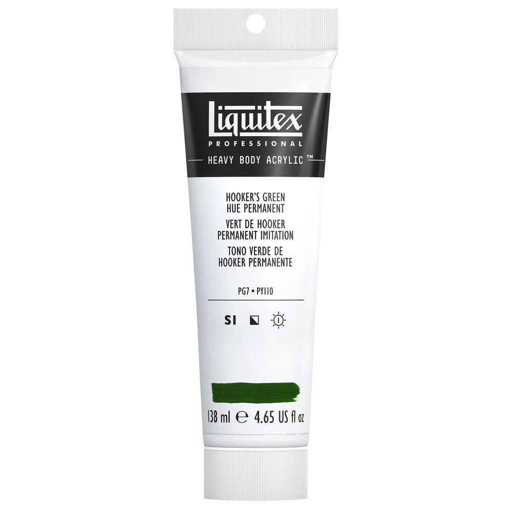 A rich dark green semi-opaque color with a yellow tint. A mixed pigment hue, the original Hooker’s green pigment was created by 19th century English botanist and illustrator William J Hooker