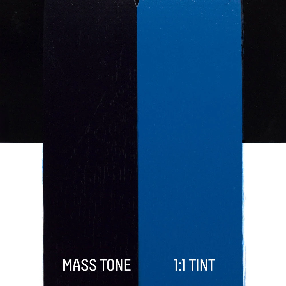 A deep dark blue semi-opaque color, that recreates the appearance of Prussian blue pigment. Prussian blue was the first known artificially manufactured color and was made by the colormaker Diesbach of Berlin in the early 1700s when experimenting with the oxidation of iron