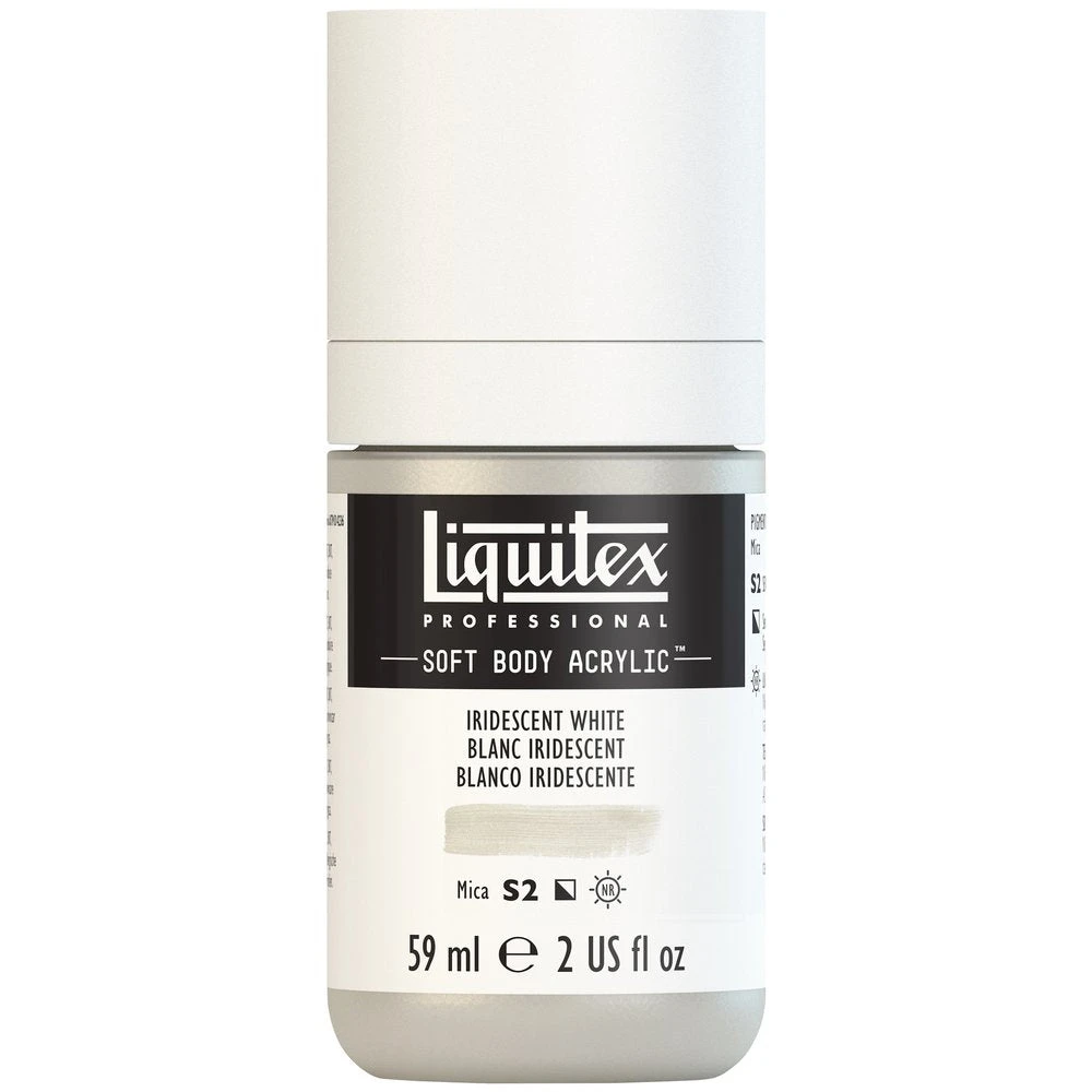 A cool pearlescent white. Semi-opaque, the color has a reflective lustre with silver facets. The pearlescent effect is most effective when mixed with transparent colors and even more effective laid over a dark background.